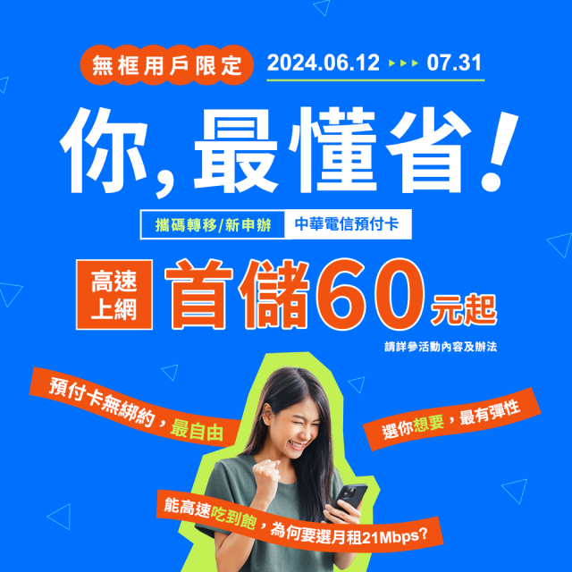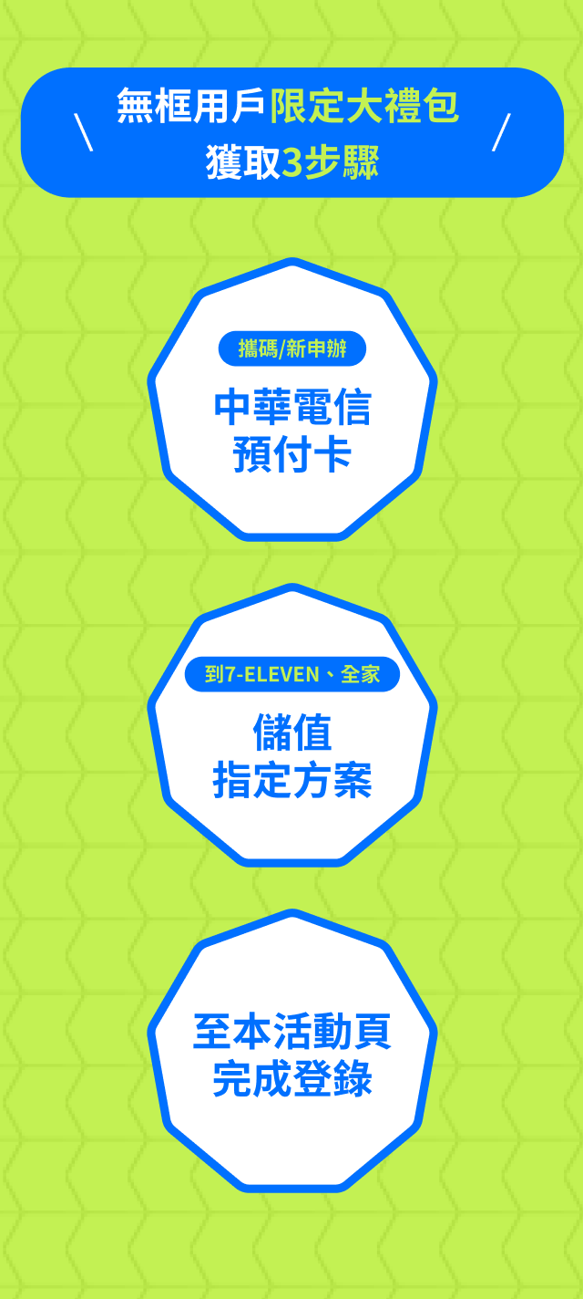- 本活動適用於個人戶參加,企業用戶不適用此活動,且每一無框電信門號以及中華電信預付卡門號僅限兌換申請一次。